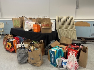 We would also like to thank all the club members who participated in the Interfaith Social Services Food Drive by donating many, many bags of food to help local families at this time of year. A photo of the lineup of donations is also below. Thanks also to Co-President Kathy Ceurvels for heading up the food drive for us, and her husband Joe for transporting everything to Interfaith.