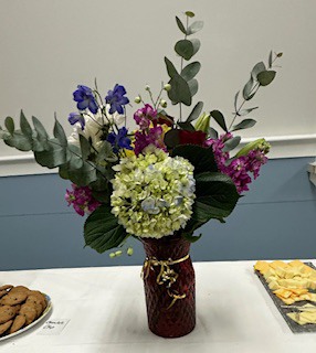 Our lunchtime January meeting included a delicious lunch provided by our hostess Lori Jackson and her team. The gorgeous buffet table floral arrangement was by Marie Ricci and lovely table arrangements were done by Pattie Lauretto.