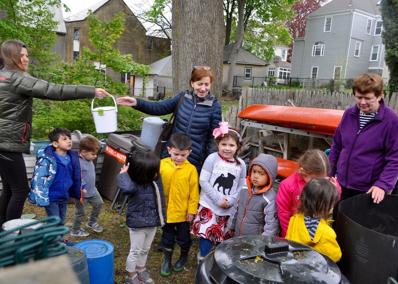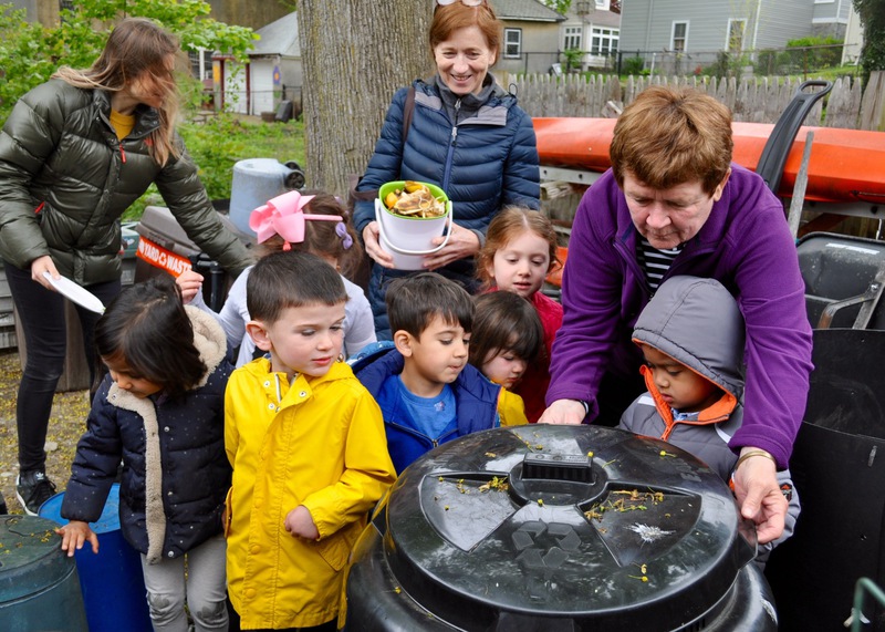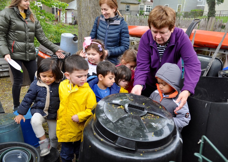 During this school year, students at the Montessori school on Wollaston Hill in Quincy have been learning about composting. To help the students learn through practical application, longtime Wollaston Garden Club member Kay Borek, an active composter, invited the students to visit her composting bin once a week. The children save their lunch scraps, fruits, and vegetables, proudly delivering their compostable materials to Kay’s compost bin every Friday at noon.