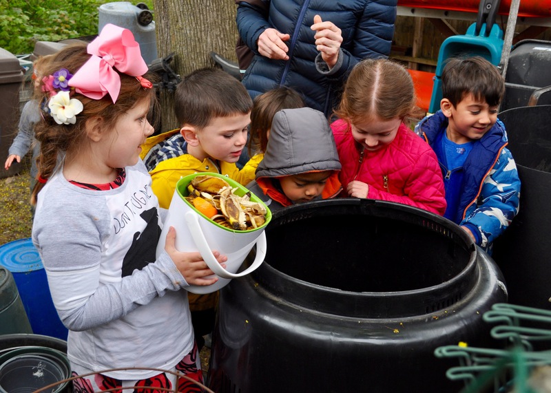 It's quite remarkable to see the 3-5 year olds, walking in pairs down the sidewalk, led by their teacher, Oonagh Connolly, delivering their compostable materials. Even more impressive is how much the children have learned and understand the value of composting and how their small contribution helps the environment.