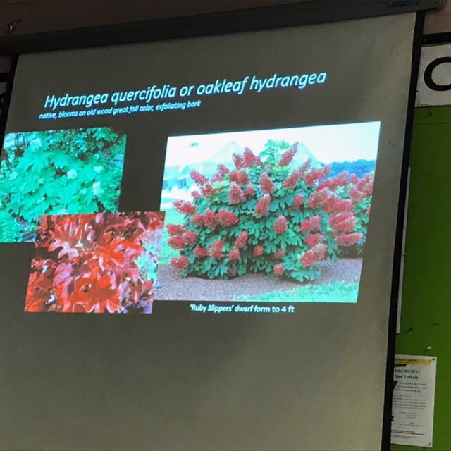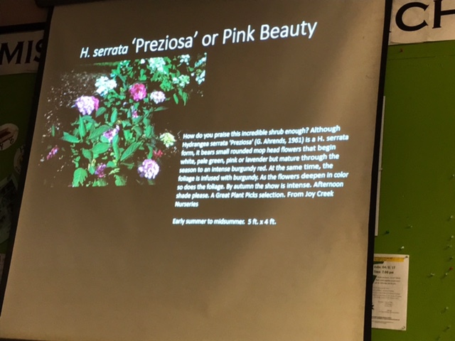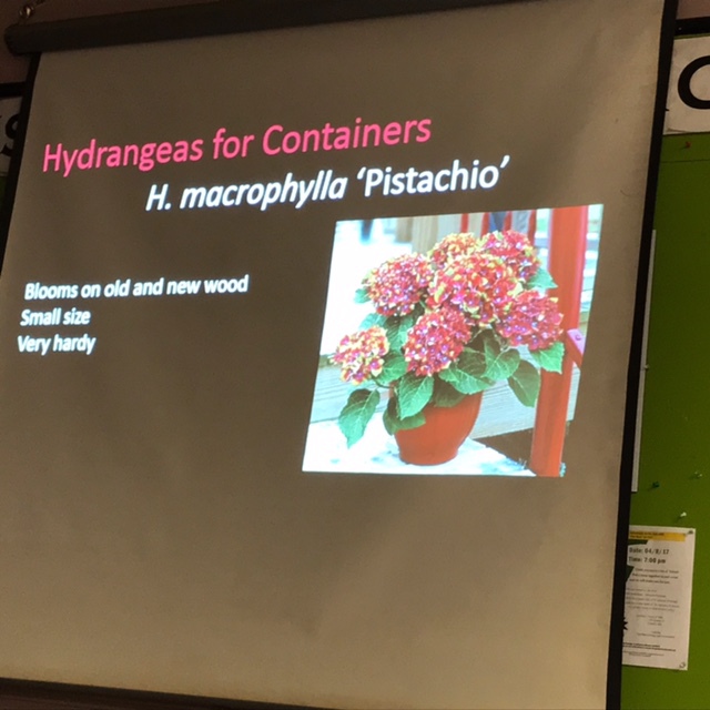 Cheryl Monroe presented "Hydrangeas for the Northeast. Cheryl, a licensed educator, studies the latest science and plant research, new plants and design trends. Cheryl spoke about blooms, pruning, changing color, and correct garden position for hydrangeas in the Northeast. She also spoke about the best new introductions and a few lesser known speciies as well as zone and climate, best bloomers, native selection hydrangeas for sun, shade and everything in between.