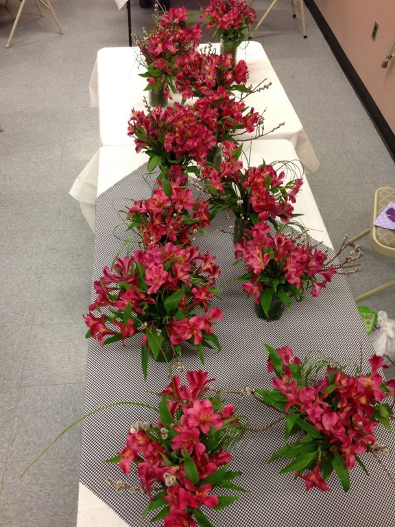 Ruth Griffin, Special Project chairs, was our Tri-Mtg hostess and the Board (officers and committee chairs) of the Wollaston Garden Club served as members of the hostess committee -they presented this wonderful array of savory and sweet refreshments enjoyed by all. Mary Cassidy and Pamela Smith created the small arrangements of astromeria for the tables. All the floral arrangements were raffled off at the end of the meeting.