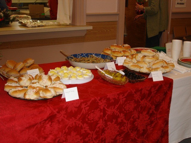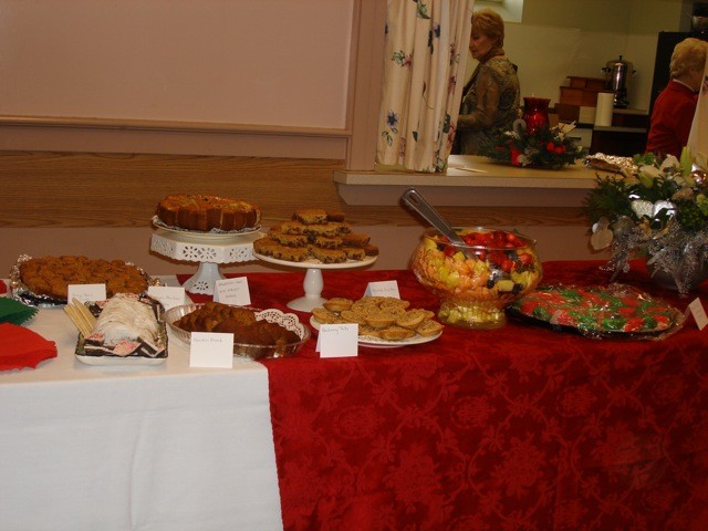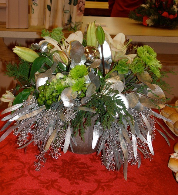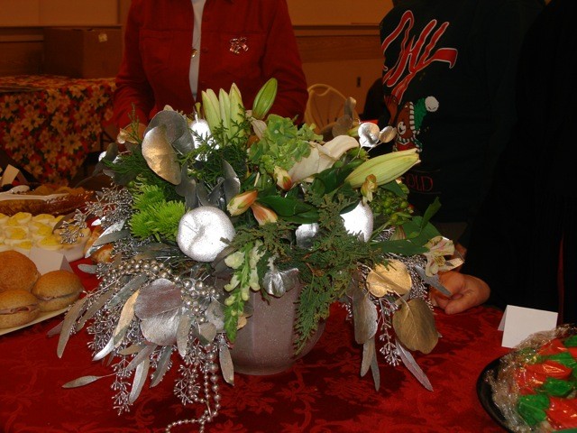 The luncheon prepared by our hostess, Donna Marsten and her committee was superb. Marie Ricci designed an elegant winter holiday floral arrangement for the buffet table and Mary Cassidy designed smaller festive winter greens arrangements for each table.