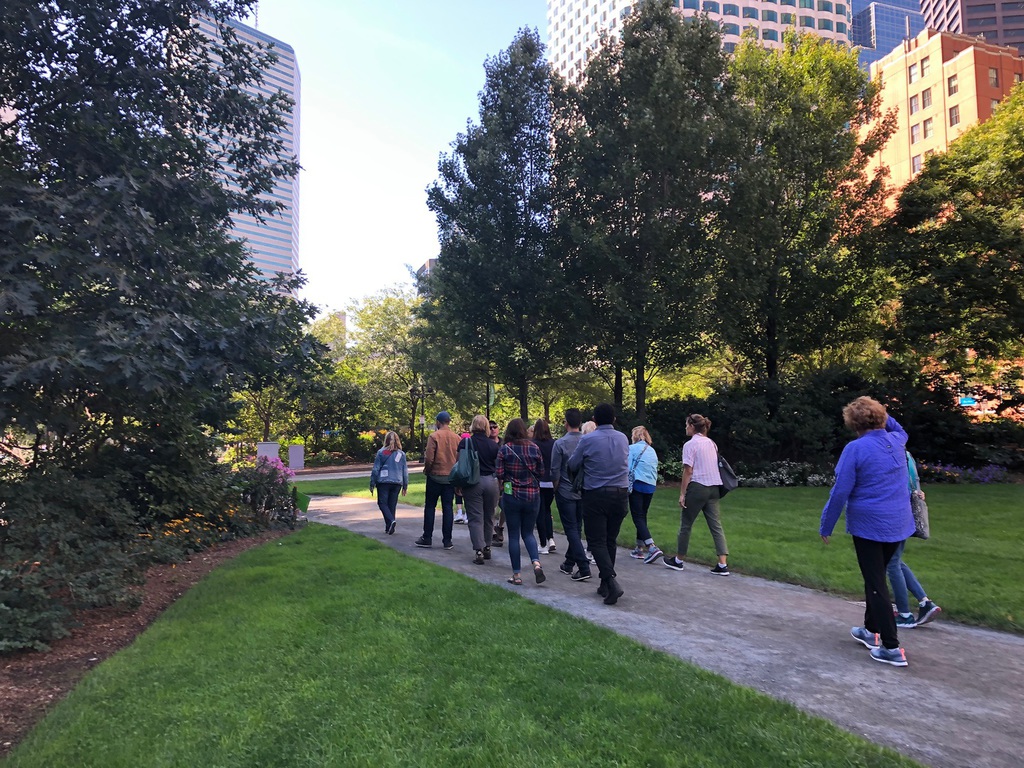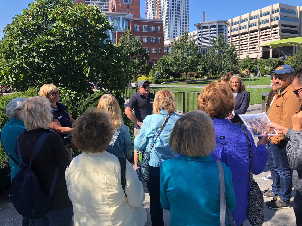 Wollaston Garden Club members enjoyed a tour of the Rose Kennedy Greenway led by Anthony Ruggiero, Horticulture Foreman for the Greenway Conservancy and Steph Almasi, Horticulturist and Volunteer Program Assistant. The Greenway showcases a variety of trees, shrubs and plants, including native plants and a native meadow. They have started a Bee Colony that is doing well and the landscape maintenance is 100% organic. This urban oasis is a treasure right in the heart of downtown Boston and the harbor.