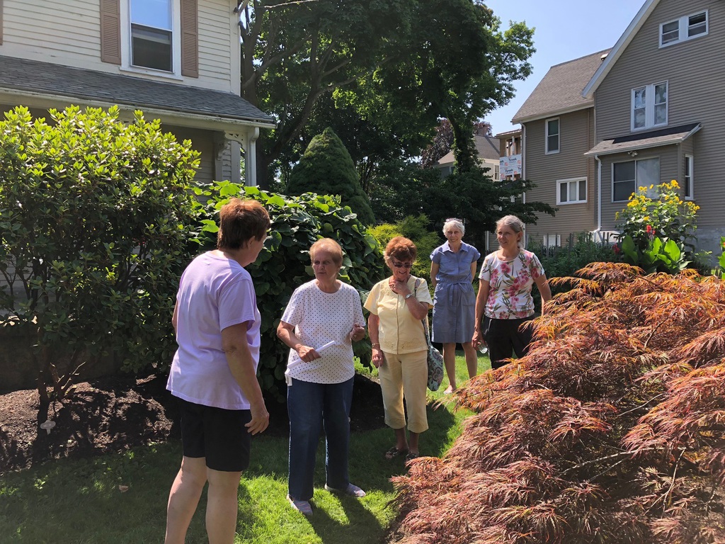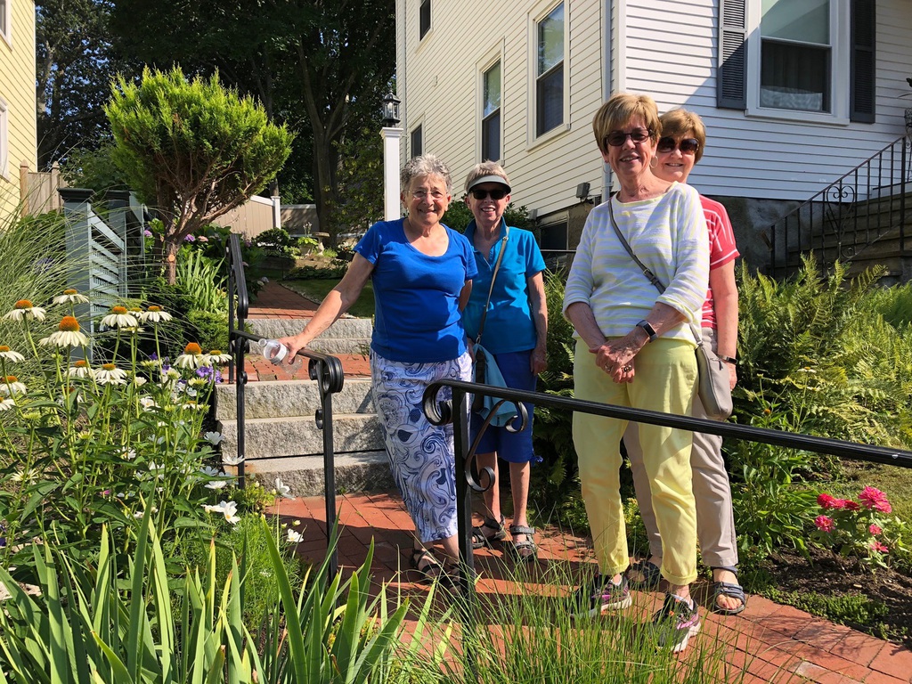 The second Garden Stroll of the summer included two Wollaston Garden Club neighbors, Kay Borek and Jo Costello. The two ever changing gardens sport lovely, meticulously cared-for pocket gardens of ornamental grass, collectible perennials, hostas, hydrangeas, and more.