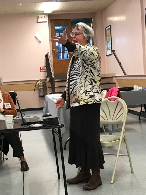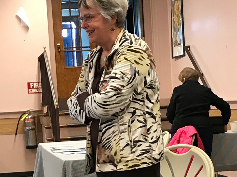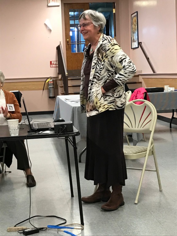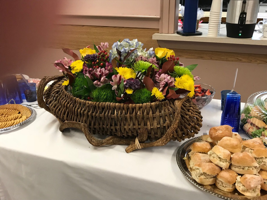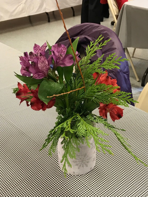 The meeting was less well attended than prior months due to illness, vacations and uncertainty about weather conditions, but that didn’t stop the 31 members and 3 guests from enjoying a wonderful luncheon provided by Head Hostess Susan Lynch and her committee consisting of Virginia Duffy, Nancy Nelson, Lori Jackson, Mary Brady, Anne McCarthy, Kathleen Brodie, Linda Browne, Anita Fasano, Janet Lynch, Jo Costello, Kathy Meade and Jan Clifford. A beautiful centerpiece was provided by Lisa Tavakoli, and colorful individual table arrangements by Mary Cassidy.