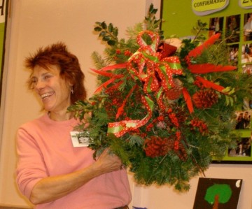 The real highlight of the November meeting was Cynthia Lewis and her program designing beautiful unique holiday wreaths, swags and floral arrangements. Cynthia's style is natural and asymmetrical. She uses seed heads and pods from her perennial garden as well as berries and branch material found locally. Lewis demonstrated wiring techniques that are so essential to ensuring that materials stay in place. Lewis explained the characteristics of the many commonly-used greens she uses in her arrangements; we especially loved her use of birch and harry lauder walking stick. Cynthia recommended we study books, magazines for current design ideas and attend classes and workshops to improve our skills; she makes the design process seem so simple and inspires you to go right out and design.