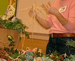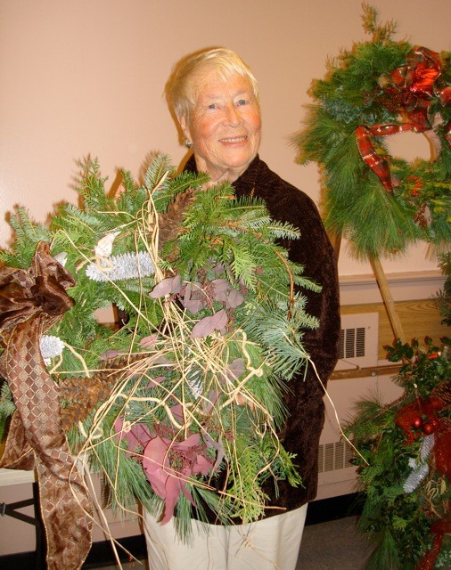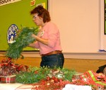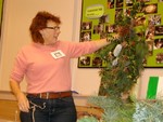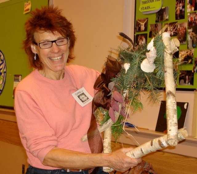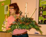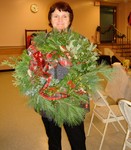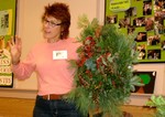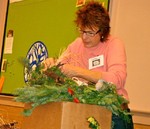 The real highlight of the November meeting was Cynthia Lewis and her program designing beautiful unique holiday wreaths, swags and floral arrangements. Cynthia's style is natural and asymmetrical. She uses seed heads and pods from her perennial garden as well as berries and branch material found locally. Lewis demonstrated wiring techniques that are so essential to ensuring that materials stay in place. Lewis explained the characteristics of the many commonly-used greens she uses in her arrangements; we especially loved her use of birch and harry lauder walking stick. Cynthia recommended we study books, magazines for current design ideas and attend classes and workshops to improve our skills; she makes the design process seem so simple and inspires you to go right out and design.