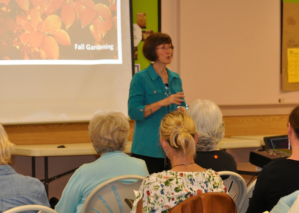 Suzanne Mahler, gardener, photographer and plant lecturer presented "Putting the Garden to Bed" Suzanne, who has been developing her 1.5 acre garden for the past 30 years, gave her expert advice on winterizing your garden. She spoke extensively on perennials, transplanting and dividing plants, compost, lawn care and other tips to prepare your established garden for the New England winter.