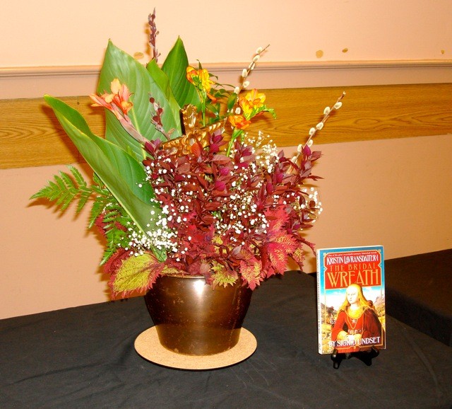 The hostess for the wonderful refreshments was Faith Raimondi; while Pam Smith, created the beautiful large fall – inspired buffet table centerpiece. Pat Artis, Leah Shea and Mary Cassidy all exibited "books in bloom". The business meeting was conducted by President Jan Clifford who reported on the budget, board business, and various club projects, including: the red emperor tulip test-garden & daffodil project with four Quincy Schools; and the need for volunteer commitment for the up-coming Holiday Greens Sale on December 7th. Elaine McGrail gave a detailed report from the Conservation Committee; and signatures were collected in support of have the "Up-dated Bottle Bill" placed on the ballot in November 2014.